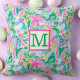 Easter Spring Bunnies Flowers Preppy Monogram Throw Pillow