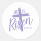 Sticker is shown in an Easter He Is Risen print.
