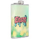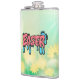 Well made flask, a little better than I had expected. Flask came in clear plastic box which gave it a nice presentation when I took it out of the zazzle packaging. Image is not printed on flask but on sticker. Don't know how this will hold up I haven't used it yet. This would make a Great gift! I plan to purchase more for friends! Cheers. I thought a little brighter than computer. Very crisp, writing wasn't