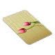 Noble gold parchment with "Happy Easter" Typography and 2 pink tulips.
