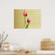 Noble gold parchment with "Happy Easter" Typography and 2 pink tulips.
