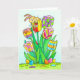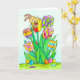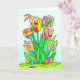 In this cute Easter illustration, a tiny easter bunny sits in a tulip, painting it with easter egg patterns. Around it are other tulips he has already painted in colorful stripes, dots and waves. Send this cute card to friends and family to wish them a Happy Easter.