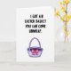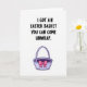 This card features a simple digital illustration on a white background with a flirty, friendly tone. Centered near the top, large black hand-drawn lettering reads, “I GOT AN EASTER BASKET YOU CAN COME UNWRAP,” spaced in a loose, casual layout that feels like a teasing invitation. The words sit above a stylized gift basket that suggests someone has a sweet surprise waiting for a special person 🐰. The basket is shaded in soft lavender with a darker purple interior and matching handle, giving it a cozy, tucked-in look. A bright pink bow is tied on the front, adding a romantic touch like a ribbon on a present meant for someone close 🌷. Light shading beneath the basket adds a bit of depth while keeping the overall look airy and uncluttered. The basket sits centered under the text, with the pink bow clearly visible against the lavender body.