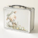 This is a standard metal lunchbox that appears to work just fine. We designed this box ourselves with an uploaded photo and custom text on the front and back. It looks absolutely beautiful except the front of the lunchbox is not centered like it shows in the photo. The print borders don't align with the inset flat part of the box where the preview photo online showed it perfectly centered in there. The back looks nice and centered though.