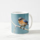Classic white mug with a digital design of an eastern bluebird on a light gray branch.