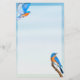 Original fine art design of male Eastern bluebirds by avian artist Carolyn McFann printed on quality stationery for bluebird and wild bird fans.