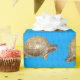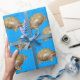 This gift wrap is perfect for wrapping up gifts for fans of turtles. The wrapping paper features photos of eastern box turtles set against a bright blue patterned background.