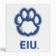 This design features two distinct elements representing Eastern Illinois University (EIU). At the top, a stylized panther paw print is prominently displayed. The paw print is rendered in blue with a gray outline, creating a bold and recognizable symbol of the EIU Panthers. Below the paw print, the acronym "EIU" is presented in a strong, sans-serif typeface, reinforcing the university's identity. The entire design is set against a clean, white background for maximum contrast. This logo is used across various platforms to represent Eastern Illinois University and its athletic teams, the Panthers. Show your EIU spirit with this unique and powerful logo design!