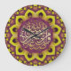 Custom Art Wall Clock : Happy energy yellow and purple geometric design with complimentary Arabic calligraphy in the centre, for daily Muslim blessings at home or office . Sunflower sunshine design to brighten up any room and area. made with love ❤ by Webgrrl.biz