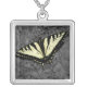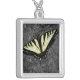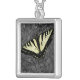 A photograph of a Eastern Tiger Swallowtail butterfly at rest on a wet sandy beach.