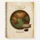 This Neo-Victorian style notebook has antique style maps of the eastern and western hemispheres traversed by a steampunk style air ship and a hot air balloon. Write your name or custom title on the romantic scrap of torn parchment on the front cover to begin documenting your adventures in life, school, or business.