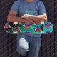 Bold color, smooth movement, and pure street energy. This vibrant skateboard design features repeating skater silhouettes layered with neon paint splashes and the phrase “Easy Does It,” creating a dynamic graffiti-inspired look that captures the spirit of skate culture. The vivid color flow and urban style make this deck graphic stand out instantly, perfect for riders and street art fans who like their style expressive, energetic, and effortlessly cool.