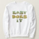 Easy does it, an uplifting saying in a bold font with green and yellow gradient. A slogan used by recovering alcoholics and addicts in 12 step programs such as Alcoholics Anonymous, Narcotics Anonymous and Al Anon.