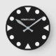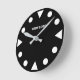 Easy to read small wall clock with simple dial face . Modern black and white no number wall clock with custom name, quote, logo or monogram. Modern plastic clock dial design with big dot indices to tell the time. Minimalist quartz face with white print. Add your own color or background image optionally. Simple minimalist text template. Contemporary wall decor for home, office, kitchen, living room, bathroom, kid's nursery, gym, business room, children's bedroom, hall, bar, cafe, restaurant, dental clinic, hospital, luxury hotel, salon, school, work place, dorm, sports club house, swimming pool and other places. Available in smaller size and square shape. Clear minimal time diver inspired face for suitable for elderly and visually impaired. Make your own timeless looking clock with the help of this easy template. Unique gift ideas for wedding, Birthday, new home, retirement and more. Gray or black hand color.