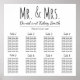 A simple, easy-to-customize black and white wedding reception seating chart with the words "Mr. & Mrs." and the bride and groom's names at the top (Change this text to anything you want). On the right, you can use the template to easily fill in the names of your guests by table. When done with that, choose your poster size and make sure to click "Customize it!" to change any font colors and styles, remove tables, add tables, rearrange things, etc. to truly personalize it for your special day!