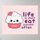 Super cute cupcake with happy face and the quote "Life is short, eat cupcakes often."