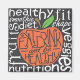 Eat, Drink and be healthy quote design in the shape of an apply, custom lettering used. Health keywords serve as background.