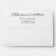 Custom white wedding envelopes feature an elegant black return address text on the back flap with Eat Drink and Be Married typography design. White envelope color can be customized.