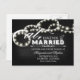 Black chalkboard modern string lights typography eat, drink and be married save the date postcard.