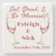 This is a stone coaster with a "Eat, Drink, & Be Married" theme with wine glass artwork. It includes text fields for a saying, names, and dates. Message MineByDesign and we can help customize any design you envision.