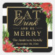 Eat Drink and Be Merry Christmas Gold Lettering Square Sticker