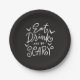 Funny Halloween Party Paper Plate with "Eat, drink, and be scary" quote.