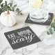 Don't let those witchy cocktails leave rings on your furniture at your next Halloween bash. These paper coasters are festive and spooky-chic! Design features a dark grey chalkboard background with "Eat, Drink and Be Scary" in white mixed typography. A spider lurking in the text completes the design. Use the optional personalization field to add a name or text of your choice.