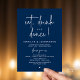 Announce your happily ever after in style with our modern minimalist casual script design wedding reception elopement dinner celebration invitation card in navy blue theme. Our Happily Ever After "eat, drink and dance!" Invitation card is ideal for couples who have decided to elope and want to host a party to celebrate their union. With its sophisticated yet playful design, this invitation is sure to set the tone for an unforgettable event. The invitation card features a minimalist design with a black and white scheme, adding a touch of timeless elegance to your celebration.