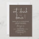 Announce your happily ever after in style with our modern minimalist casual script design wedding reception elopement dinner celebration invitation card in dark taupe brown theme. Our Happily Ever After "eat, drink and dance!" Invitation card is ideal for couples who have decided to elope and want to host a party to celebrate their union. With its sophisticated yet playful design, this invitation is sure to set the tone for an unforgettable event. The invitation card features a minimalist design with a black and white scheme, adding a touch of timeless elegance to your celebration.