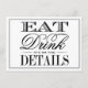Eat, Drink & Be Married Modern Black & White Wedding Detail Cards.