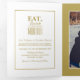 Eat, Drink & be Married White & Gold Wedding Suite Tri-Fold Invitation
