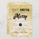 Eat, Drink Be Merry Gold Bokeh Holiday Xmas Invitation