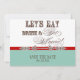 Elegant and fun fonts announce the message, "Let's eat, drink and get married!" on a delightful whimsical Wedding Invitation Ensemble. In a warm, retro color palette of vintage red, aqua blue, cream and chocolate brown - it's the best of vintage with a modern twist. The front side has the text, "Save the Date" and your wedding date. On the reverse side are two printer's ornaments with elegant hand calligraphy font ampersand and the text "Celebrate with us" in unique and fun fonts along with your save the date wedding invitation information. There is a complete suite of products available with this design and we can do it in any color combination(s) you desire.
