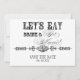 Elegant and fun fonts announce the message, "Let's eat, drink and get married!" on a delightful whimsical Wedding Invitation Ensemble. In a clean, crisp, black and white color palette it's the best of vintage with a modern twist. The front side has the text, "Save the Date" and your wedding date. On the reverse side are two printer's ornaments with elegant hand calligraphy font ampersand and the text "Celebrate with us" in unique and fun fonts along with your save the date wedding invitation information. There is a complete suite of products available with this design and we can do it in any color combination(s) you desire.