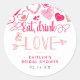 "Eat, Drink & Love" Valentine's Day Bridal Shower Classic Round Sticker