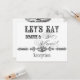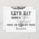 Elegant and fun fonts announce the message, "Let's eat, drink and get married!" on a delightful whimsical Wedding Invitation Ensemble. In a clean, crisp, black and white color palette it's the best of vintage with a modern twist. The front side has the text and your names with your wedding date. On the reverse side are two printer's ornaments with elegant hand calligraphy font ampersand and the text "Celebrate with us" in unique and fun fonts along with your wedding reception invitation information. There is a complete suite of products available with this design and we can do it in any color combination(s) you desire.