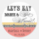 Elegant and fun fonts announce the message, "Let's eat, drink and get married!" on a delightful whimsical Wedding Invitation Ensemble. In a clean, crisp, mustard gold, peach sorbet, grey, black and white color palette it's the best of vintage with a modern twist. The sticker or seal has the text and your names with your wedding date. There is a complete suite of products available with this design and we can do it in any color combination(s) you desire.