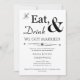 Yes, you can print on the back of your invitation for free! Most designs already have a corresponding design on the back that can be personalized using the Design Tool and going to Layers. This is a great way to communicate more information or further personalize your Eat Drink We Got Married Elopement Party Invitation. The option is really up to you.