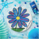 Personalized name eat healthy. Blue daisy flower with yellow center and green leaves for children. Nutritional foods typography in yellow, red and black text on the floral petals. Personalize name or delete. Make eating a fun and healthy time at mealtime with a love for good foods with these non-toxic melamine plates. Leave text as is, or personalize it. Original Artwork and Text Saying Design 2018 by TamiraZDesigns.