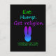 What if God were a Bunny? He is. Eat, Hump, Get Religion at the Church of the Cosmic Bunny (www.bunnychurch.com). Violet/purple, aqua/blue and lime green text with glowing Bunny Rabbit.