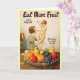 Vintage poster image by Joseph Bruno Moran, encouraging people to EAT MORE FRUIT including the words "and keep fit", "the fruits of perfect health", depicting a bowl of fruit, a mother and child. The only thing missing is to make sure the fruits are certified Organic (Non GMO). Encourage others to adopt a more healthy diet with this image