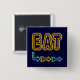 EAT retro art based on a vintage neon restaurant sign. The letters are yellow and red, the arrows are blue, red and yellow. Fun, funky advertising art for people who cook or eat.