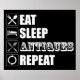 Eat. Sleep. Antiques. Repeat. Funny accessory is a great antique lover gift for a man, woman, teens or kids who loves collecting, thrifting & hunting for antiques & collectibles at a garage sale, yard sale, flea market, thrift shop or antique store. If you're an antique hunter & collector, and your hobby is finding and shopping for antique furniture, jewelry, art and other vintage items, this design is for you!