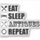 Eat. Sleep. Antiques. Repeat. Funny accessory is a great antique lover gift for a man, woman, teens or kids who loves collecting, thrifting & hunting for antiques & collectibles at a garage sale, yard sale, flea market, thrift shop or antique store. If you're an antique hunter & collector, and your hobby is finding and shopping for antique furniture, jewelry, art and other vintage items, this design is for you!