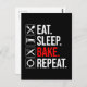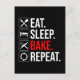 Eat. Sleep. Bake. Repeat. This funny quote baking accessory is a great gift for a man, woman, teens & kids who love to bake in the kitchen. Also perfect for a baker or a bakery worker. If you're a home baker, love the culinary arts, and love to prepare delicious bread, cookies, muffins, cakes or cupcakes in the oven, then this humorous design is for you.