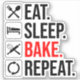 Eat. Sleep. Bake. Repeat. This funny quote baking accessory is a great gift for a man, woman, teens & kids who love to bake in the kitchen. Also perfect for a baker or a bakery worker. If you're a home baker, love the culinary arts, and love to prepare delicious bread, cookies, muffins, cakes or cupcakes in the oven, then this humorous design is for you.