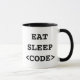 Eat sleep code coffee mug for programmers. Cute gift idea for nerdy developers and internet geeks. Geeky humor text design. Make your own funny parody.