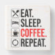 Eat. Sleep. Coffee. Repeat. This funny coffee accessory is a great gift for a coffee lover. Perfect for men & women coffee drinkers & coffee addicts who have several mugs or cups of coffee in the morning. Do you love to drink coffee, cappuccino, lattes or espresso with breakfast? Are you addicted to coffee & caffeine? If you can't go a day without coffee, then this is for you!
