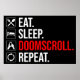 Eat. Sleep. Doomscroll. Repeat. This funny sarcastic doomscroll design is a great gift for a man or woman who's a doomscroller. Doomscrolling, or doomsurfing, is when you're constantly scrolling through your news apps and social media looking for bad news. This decade has been full of crisis, which can take a toll on your mental wellbeing. If you scroll through your news feed, reading and looking for news articles that give you anxiety, this accessory is probably for you!