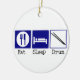 Lightweight, smooth, pure white ornament with nice sheen. Perfect size to be seen from across the room ... and to attract closer inspection! Price was great for ordering enough for the whole family! Clear, bold black design just as requested. Matches the order exactly. Just so nice!